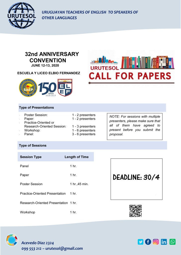 Would you like to present at the 2020 URUTESOL Convention? Call for papers is now open!