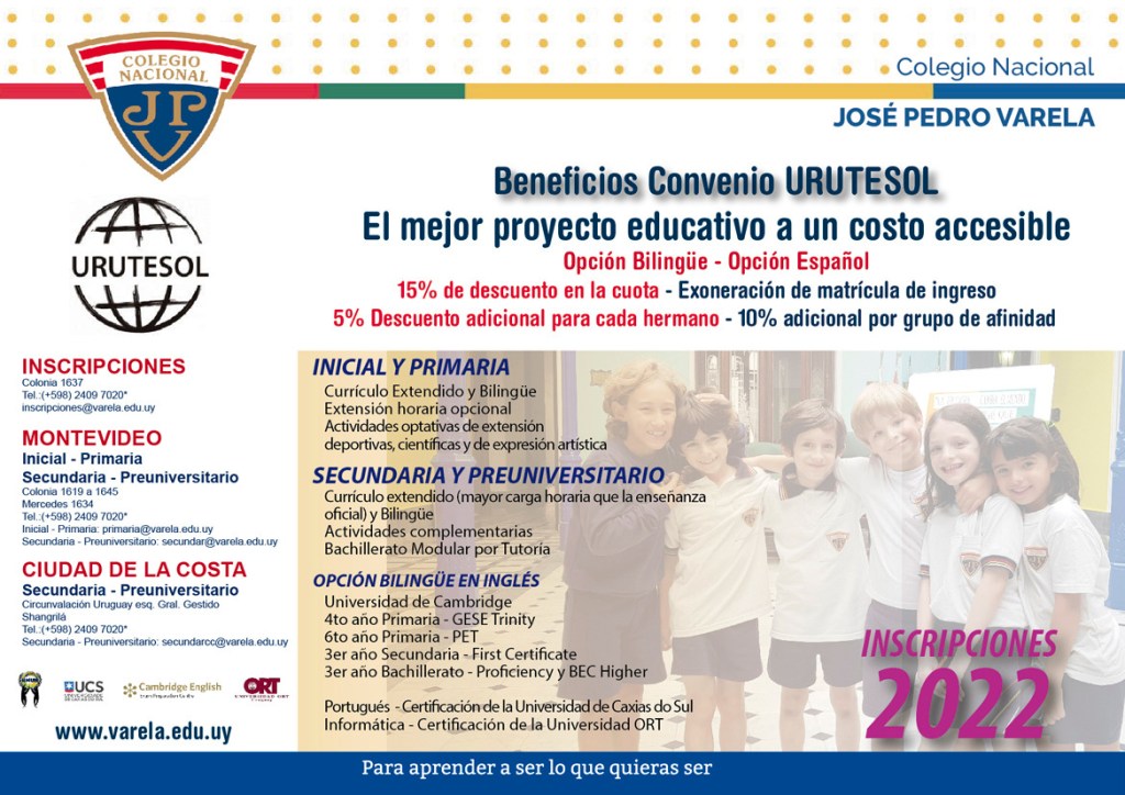 Conocé los beneficios que tienen en el Colegio José Pedro Varela los miembros de URUTESOL:
